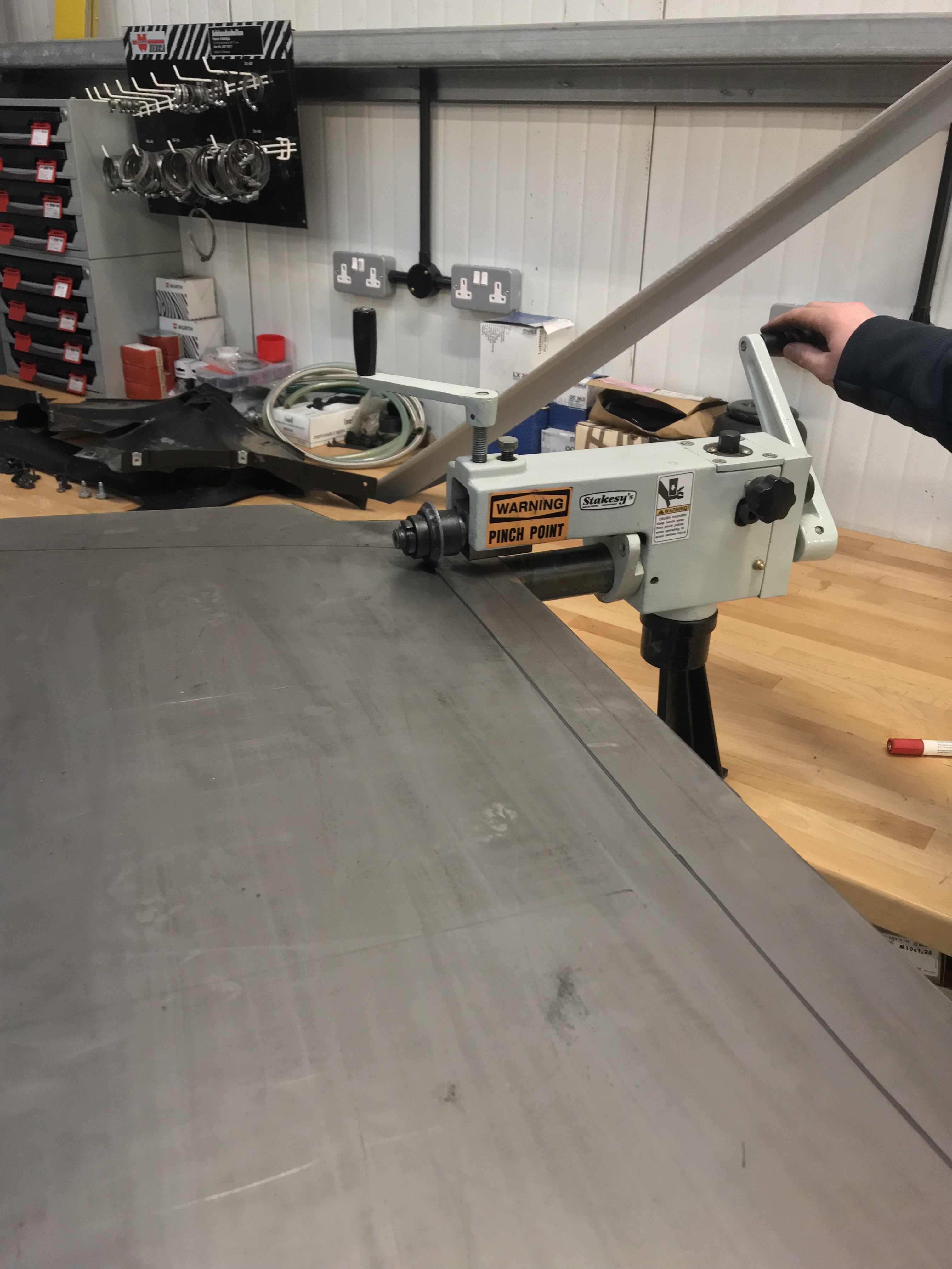 Running with a race car theme we chose to include bead rolled panels in the air ride install. Bucking the trend for leather or other fabrics on the interior surfaces we wanted an engineered feel to the install.